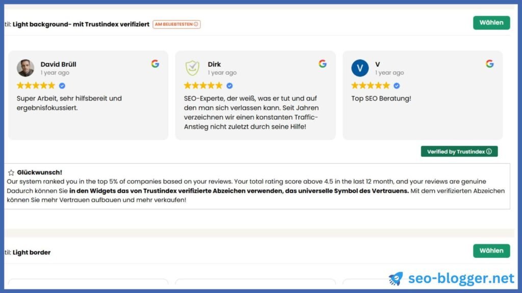 Die Bewertungen sind jetzt erfolgreich auf deiner Website eingebunden. Größe, Abstände und Position kannst du wie gewohnt direkt in Elementor an dein Layout anpassen.