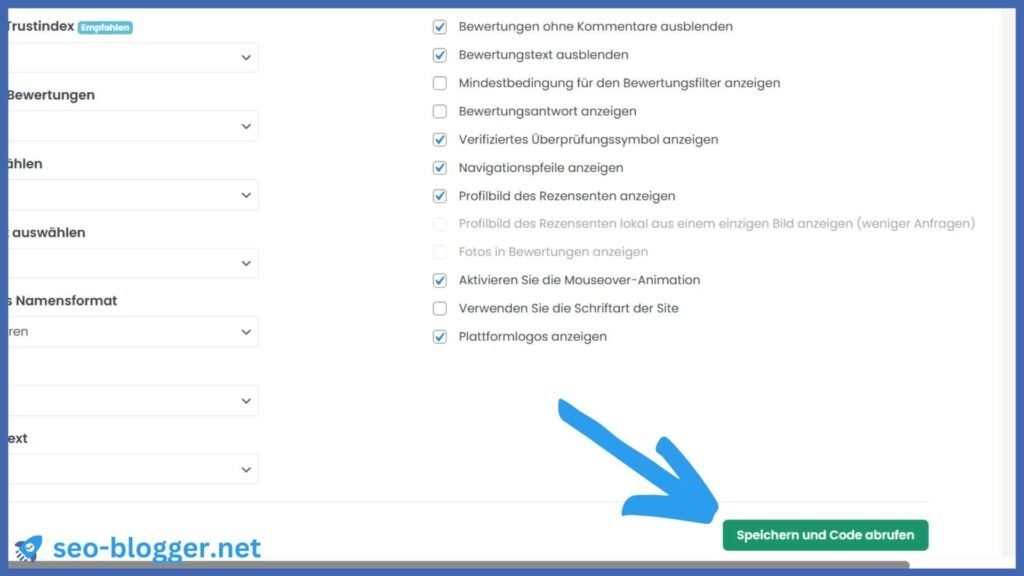Wenn du mit den Einstellungen zufrieden bist, klicke auf Speichern und Code abrufen: