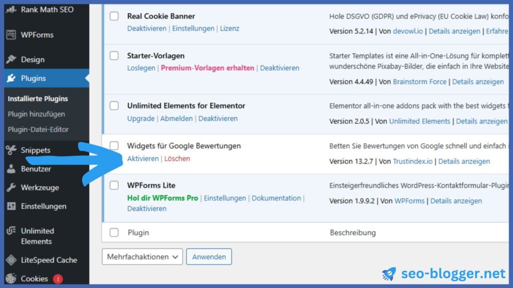 In dieser Schritt-für-Schritt-Anleitung zeige ich dir mit Screenshots, wie du deine Bewertungen aus dem Google Unternehmensprofil mit dem kostenlosen Plugin Widgets for Google Reviews in WordPress einbindest.